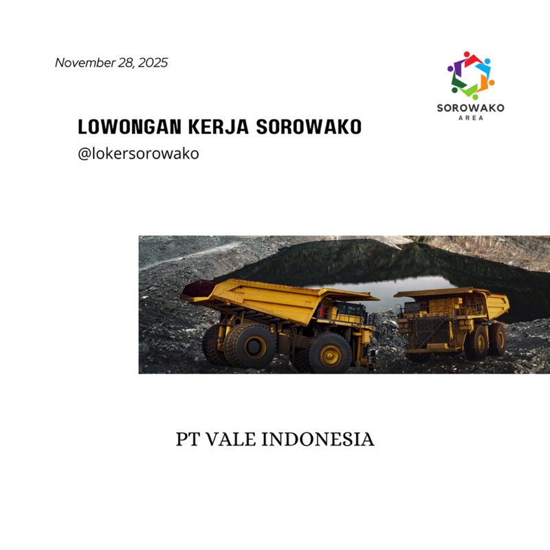 PT VALE INDONESIA sedang membuka kesempatan karier untuk posisi Geologist & Jr. Mine Engineer Deskripsi pekerjaan selengkapnya klik disini