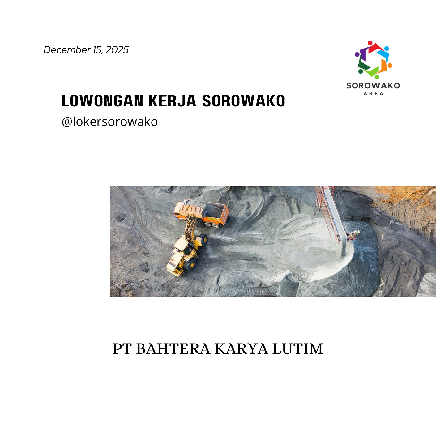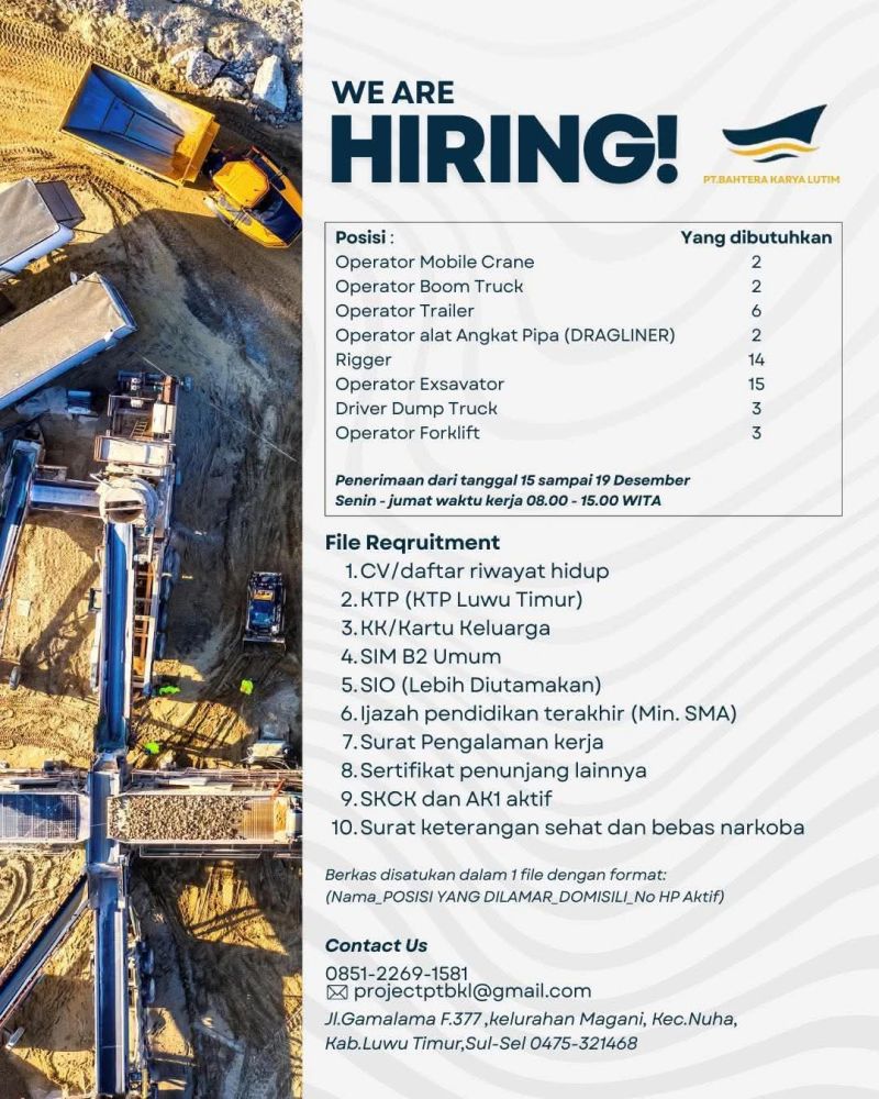 PT BAHTER KARYA LUTIM sedang membuka kesempatan bekerja bagi Anda! Mencari kandidat untuk berbagai posisi.